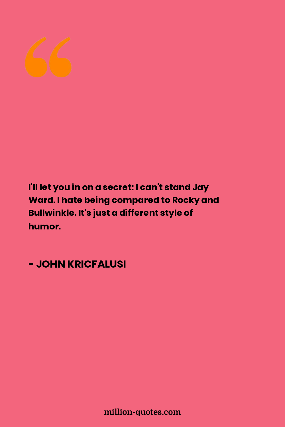 I'll let you in on a secret: I can't stand Jay Ward. I hate being compared to Rocky and Bullwinkle. It's just a different style of humor.