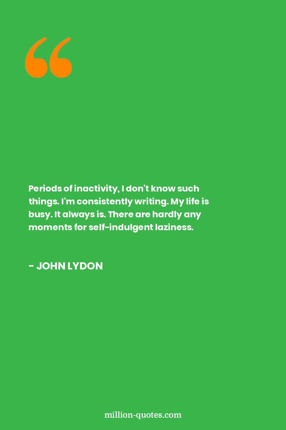 Periods of inactivity, I don't know such things. I'm consistently writing. My life is busy. It always is. There are hardly any moments for self-indulgent laziness.