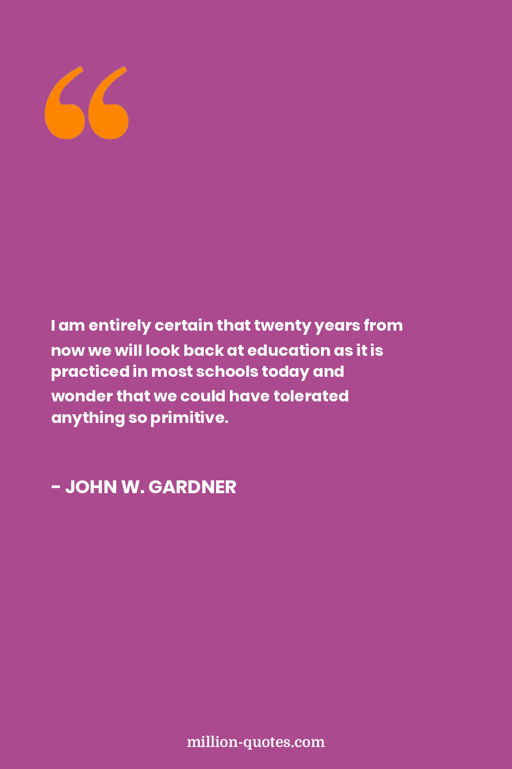 I am entirely certain that twenty years from now we will look back at education as it is practiced in most schools today and wonder that we could have tolerated anything so primitive.