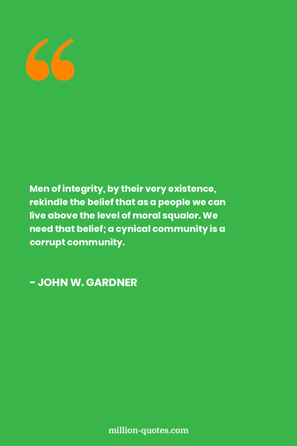 Men of integrity, by their very existence, rekindle the belief that as a people we can live above the level of moral squalor. We need that belief; a cynical community is a corrupt community.
