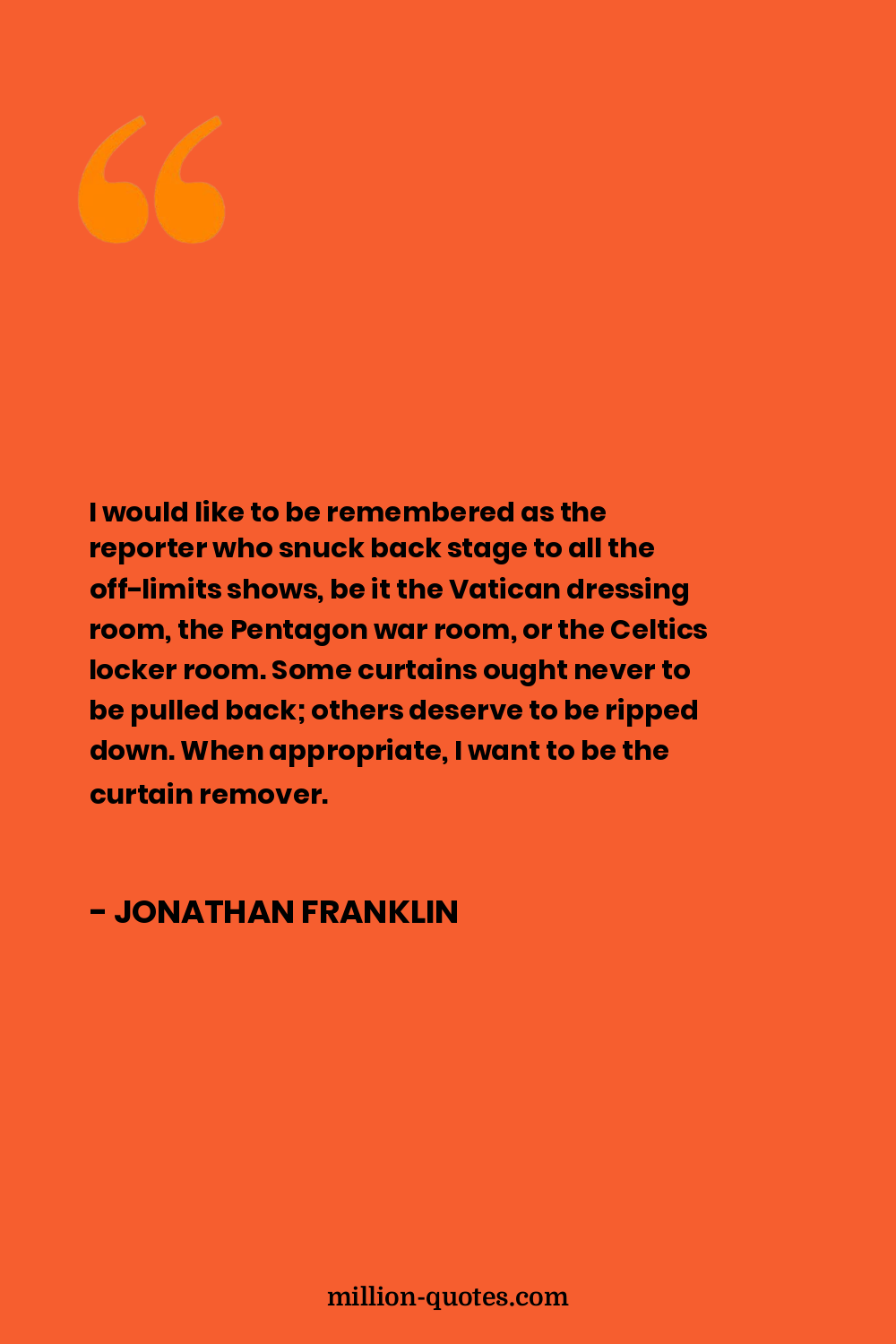 I would like to be remembered as the reporter who snuck back stage to all the off-limits shows, be it the Vatican dressing room, the Pentagon war room, or the Celtics locker room. Some curtains ought never to be pulled back; others deserve to be ripped down. When appropriate, I want to be the curtain remover.