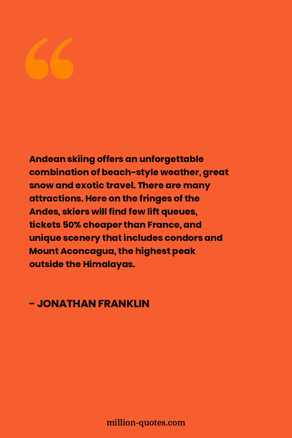 Andean skiing offers an unforgettable combination of beach-style weather, great snow and exotic travel. There are many attractions. Here on the fringes of the Andes, skiers will find few lift queues, tickets 50% cheaper than France, and unique scenery that includes condors and Mount Aconcagua, the highest peak outside the Himalayas.
