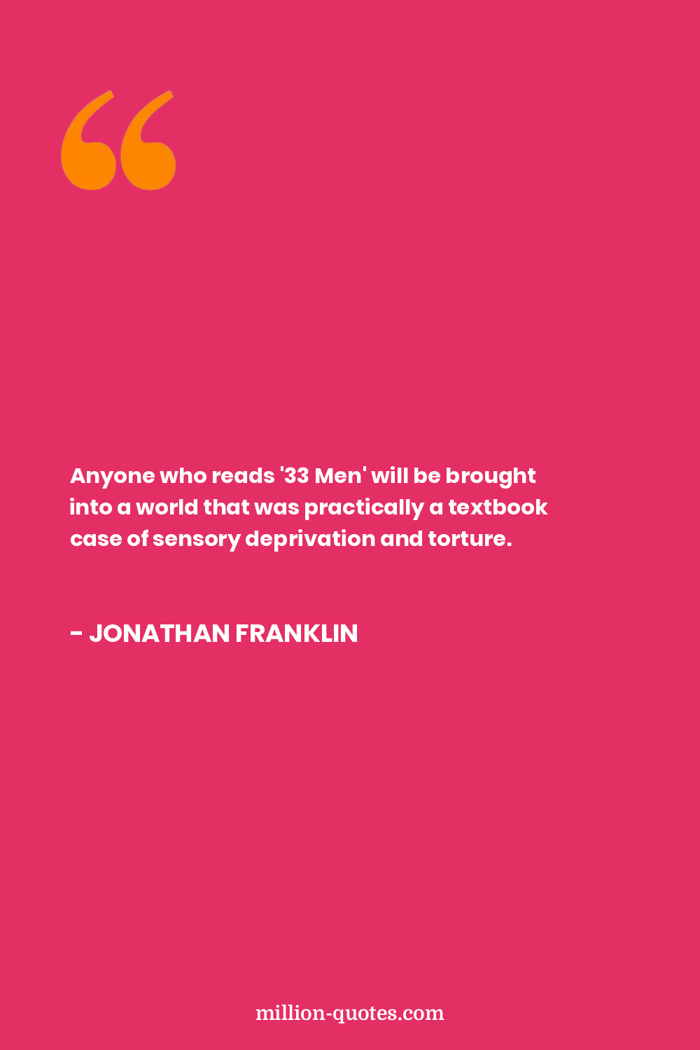 Anyone who reads '33 Men' will be brought into a world that was practically a textbook case of sensory deprivation and torture.