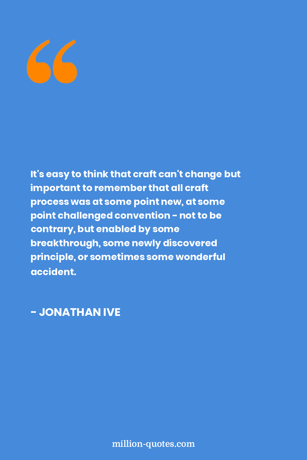It's easy to think that craft can't change but important to remember that all craft process was at some point new, at some point challenged convention - not to be contrary, but enabled by some breakthrough, some newly discovered principle, or sometimes some wonderful accident.