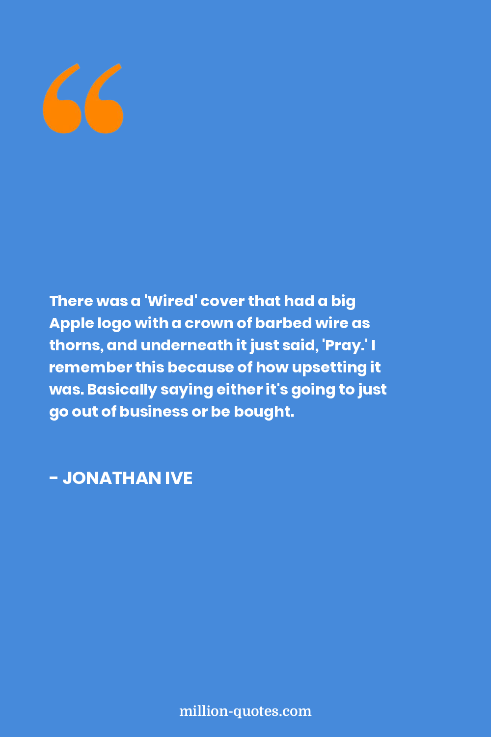There was a 'Wired' cover that had a big Apple logo with a crown of barbed wire as thorns, and underneath it just said, 'Pray.' I remember this because of how upsetting it was. Basically saying either it's going to just go out of business or be bought.