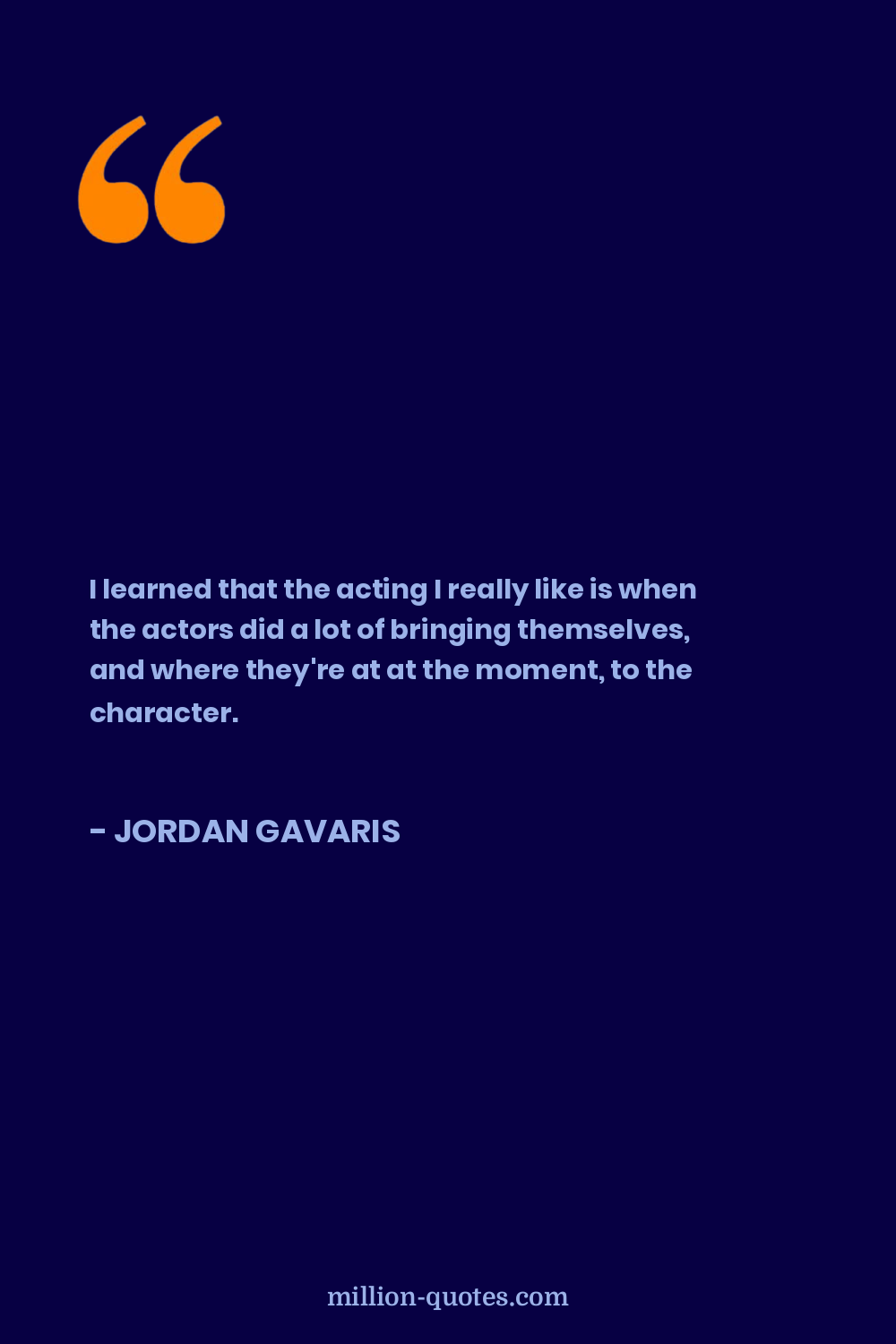 I learned that the acting I really like is when the actors did a lot of bringing themselves, and where they're at at the moment, to the character.