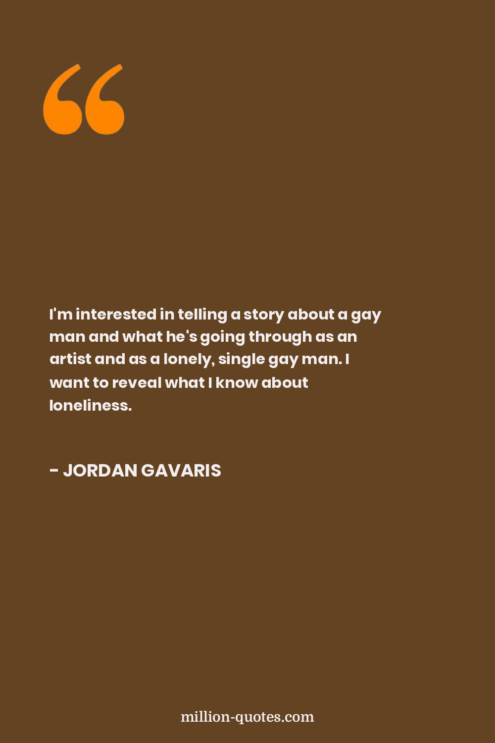 I'm interested in telling a story about a gay man and what he's going through as an artist and as a lonely, single gay man. I want to reveal what I know about loneliness.