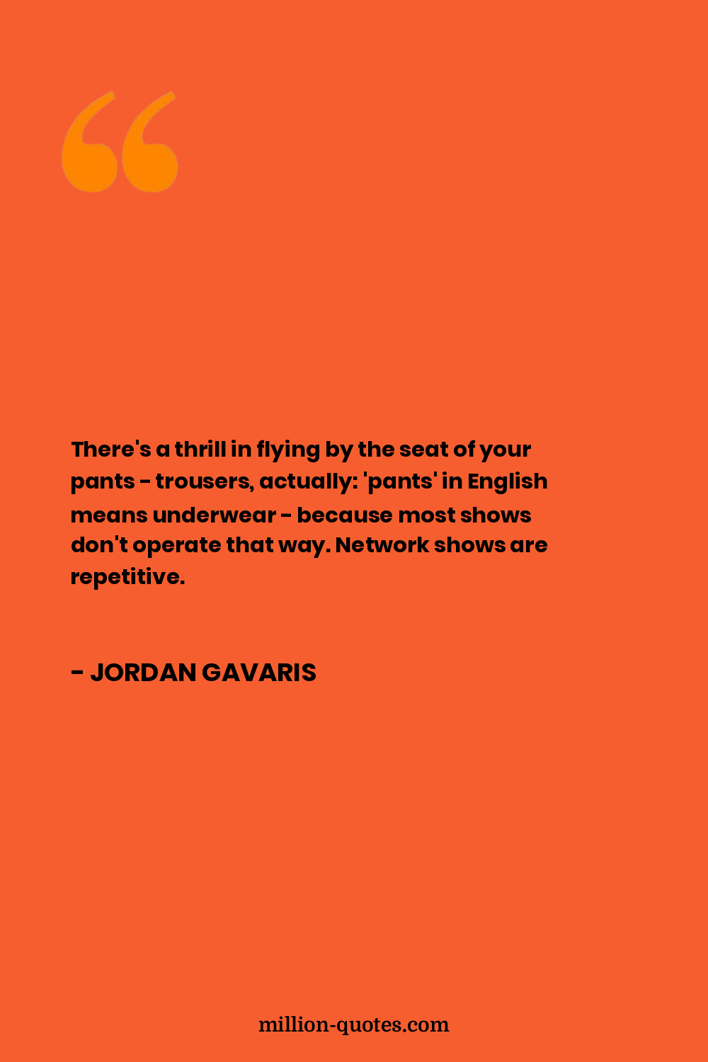 There's a thrill in flying by the seat of your pants - trousers, actually: 'pants' in English means underwear - because most shows don't operate that way. Network shows are repetitive.