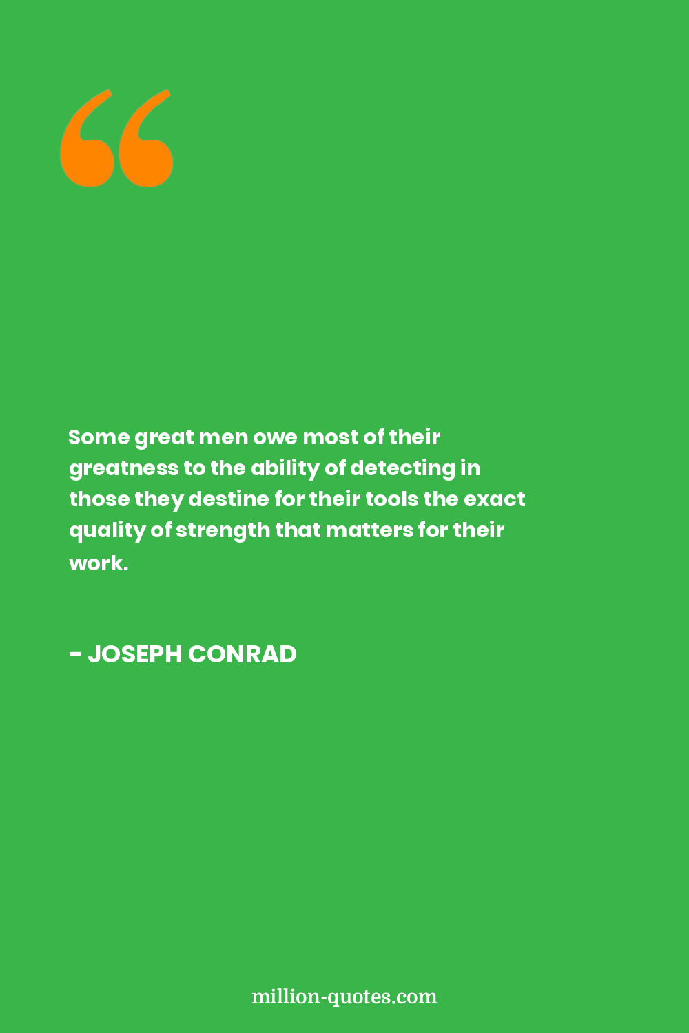 Some great men owe most of their greatness to the ability of detecting in those they destine for their tools the exact quality of strength that matters for their work.