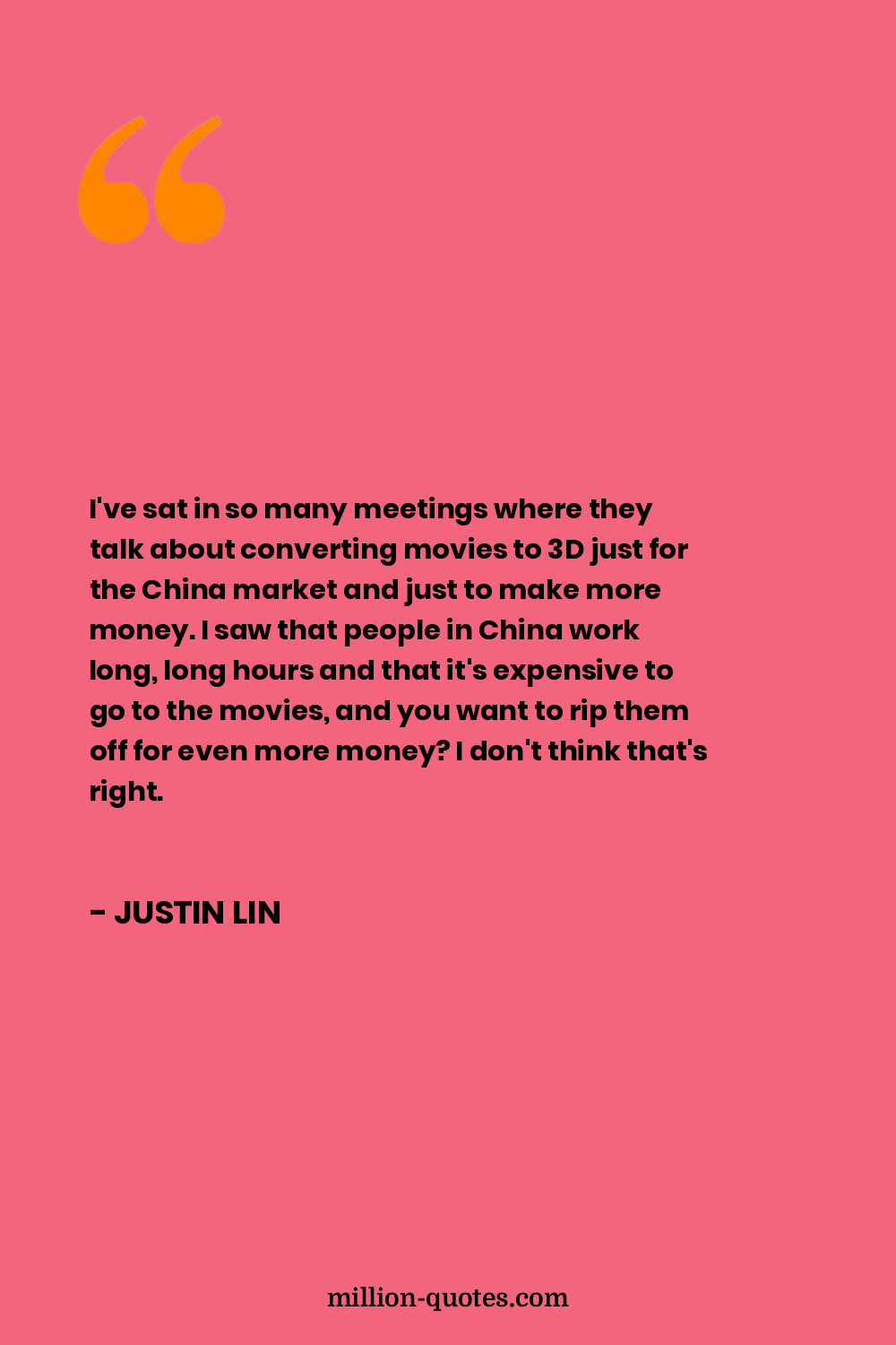 I've sat in so many meetings where they talk about converting movies to 3D just for the China market and just to make more money. I saw that people in China work long, long hours and that it's expensive to go to the movies, and you want to rip them off for even more money? I don't think that's right.