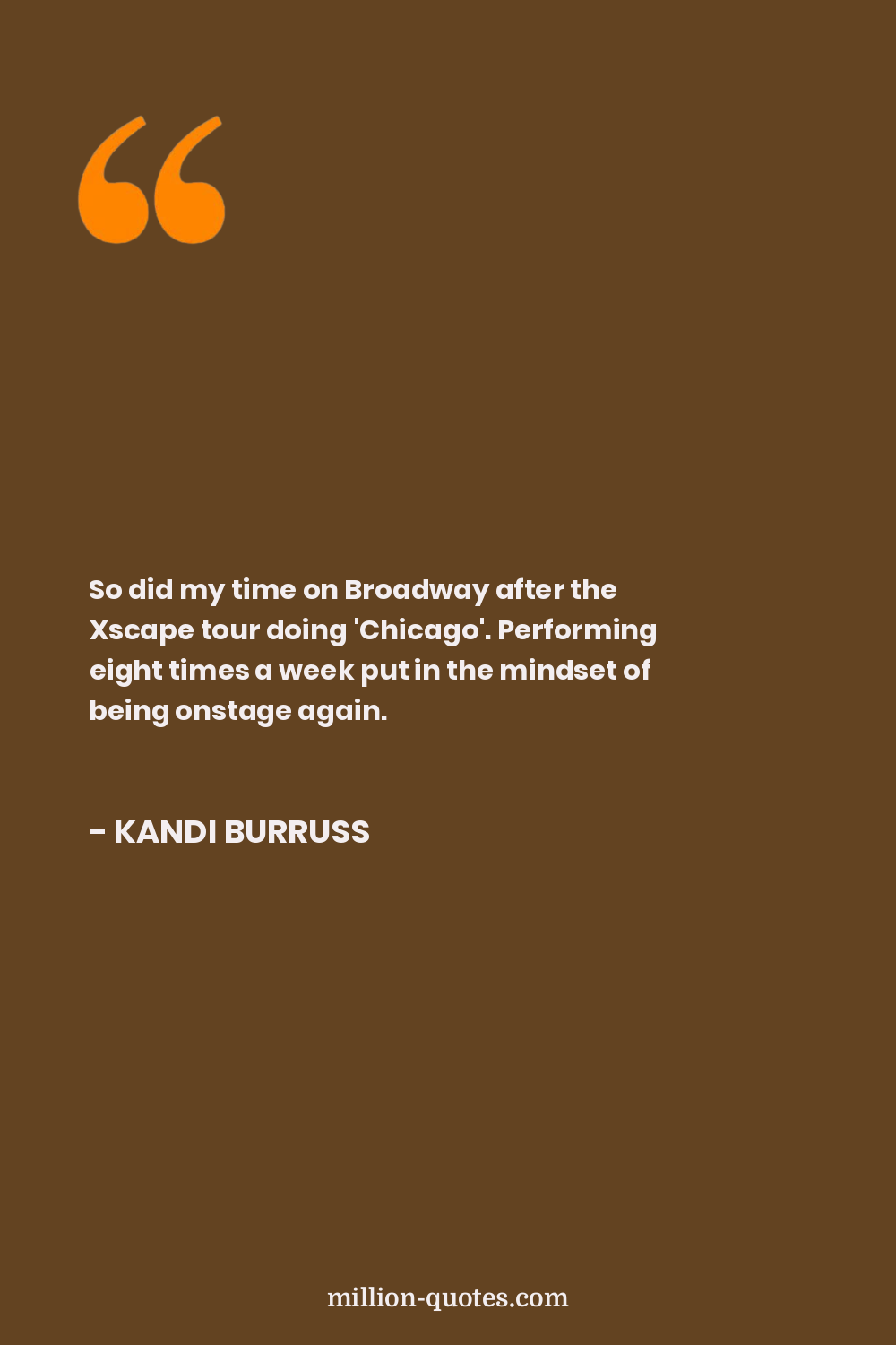 So did my time on Broadway after the Xscape tour doing 'Chicago'. Performing eight times a week put in the mindset of being onstage again.