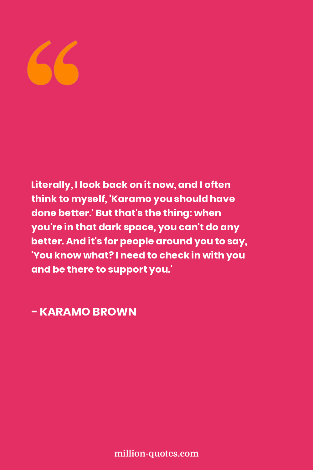 Literally, I look back on it now, and I often think to myself, 'Karamo you should have done better.' But that's the thing: when you're in that dark space, you can't do any better. And it's for people around you to say, 'You know what? I need to check in with you and be there to support you.'