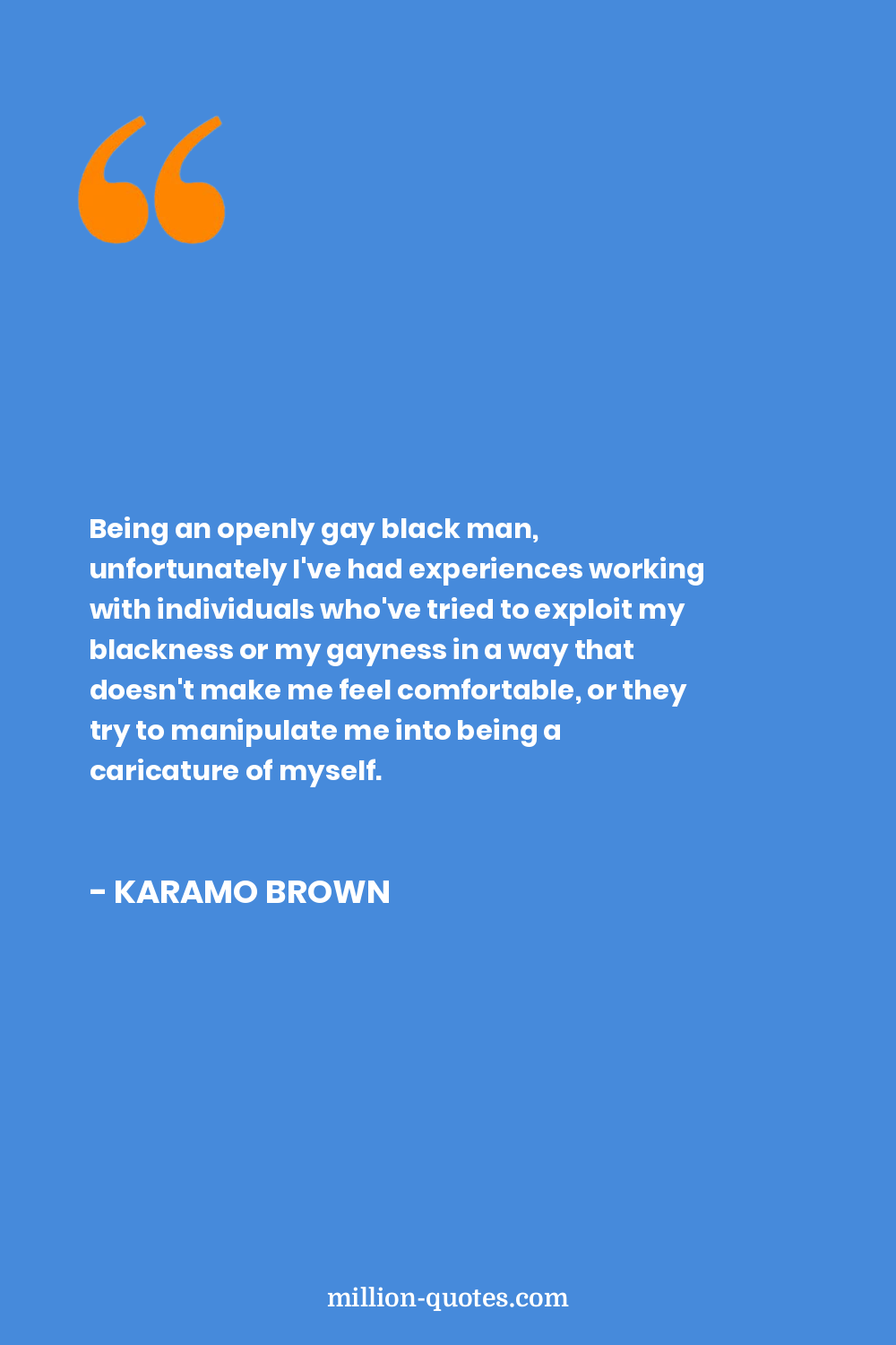 Being an openly gay black man, unfortunately I've had experiences working with individuals who've tried to exploit my blackness or my gayness in a way that doesn't make me feel comfortable, or they try to manipulate me into being a caricature of myself.