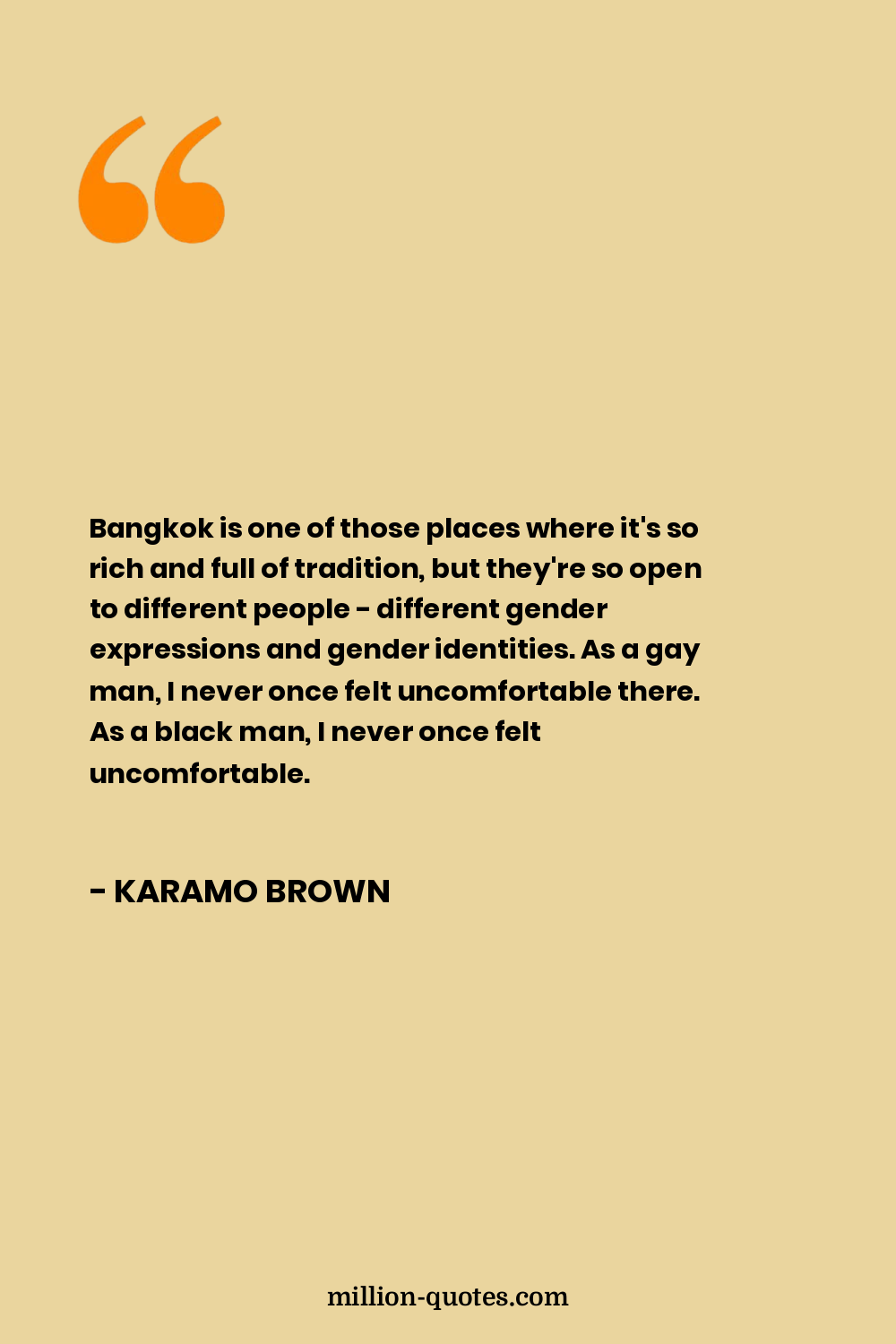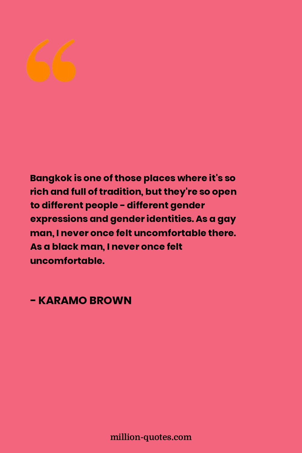 Bangkok is one of those places where it's so rich and full of tradition, but they're so open to different people - different gender expressions and gender identities. As a gay man, I never once felt uncomfortable there. As a black man, I never once felt uncomfortable.