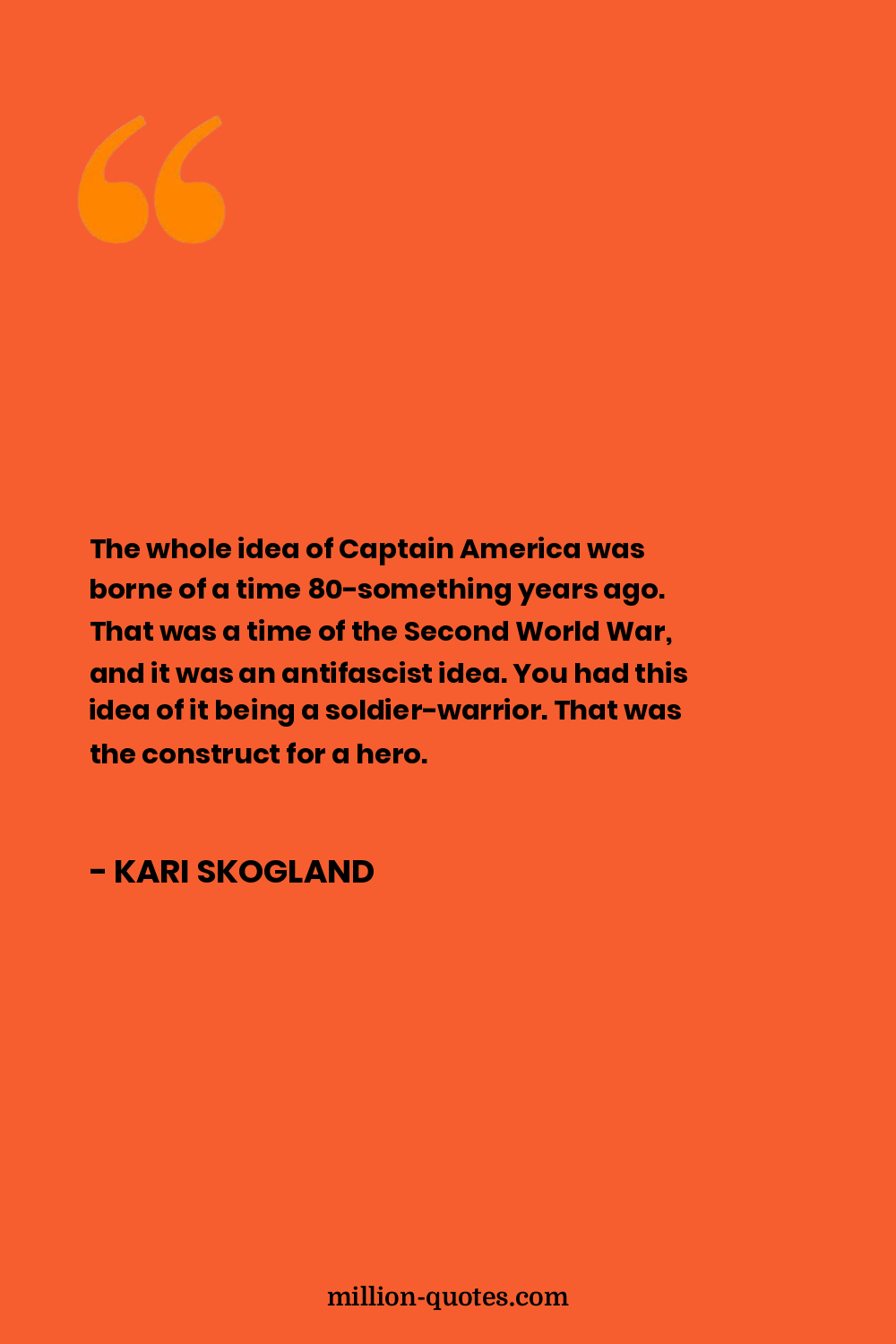 The whole idea of Captain America was borne of a time 80-something years ago. That was a time of the Second World War, and it was an antifascist idea. You had this idea of it being a soldier-warrior. That was the construct for a hero.