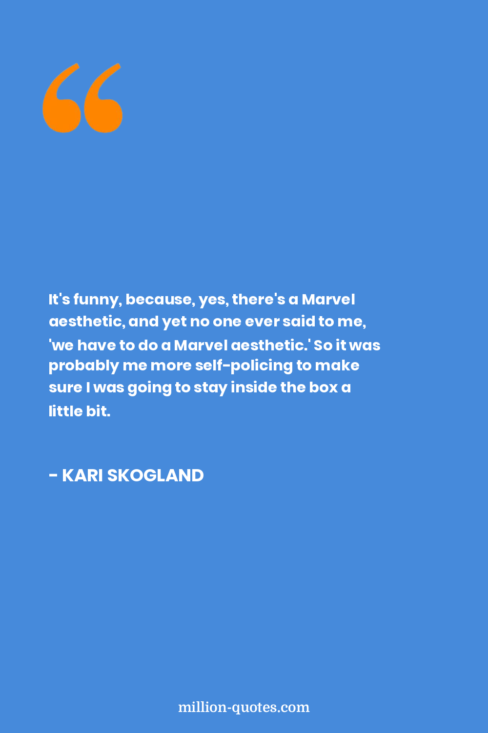 It's funny, because, yes, there's a Marvel aesthetic, and yet no one ever said to me, 'we have to do a Marvel aesthetic.' So it was probably me more self-policing to make sure I was going to stay inside the box a little bit.