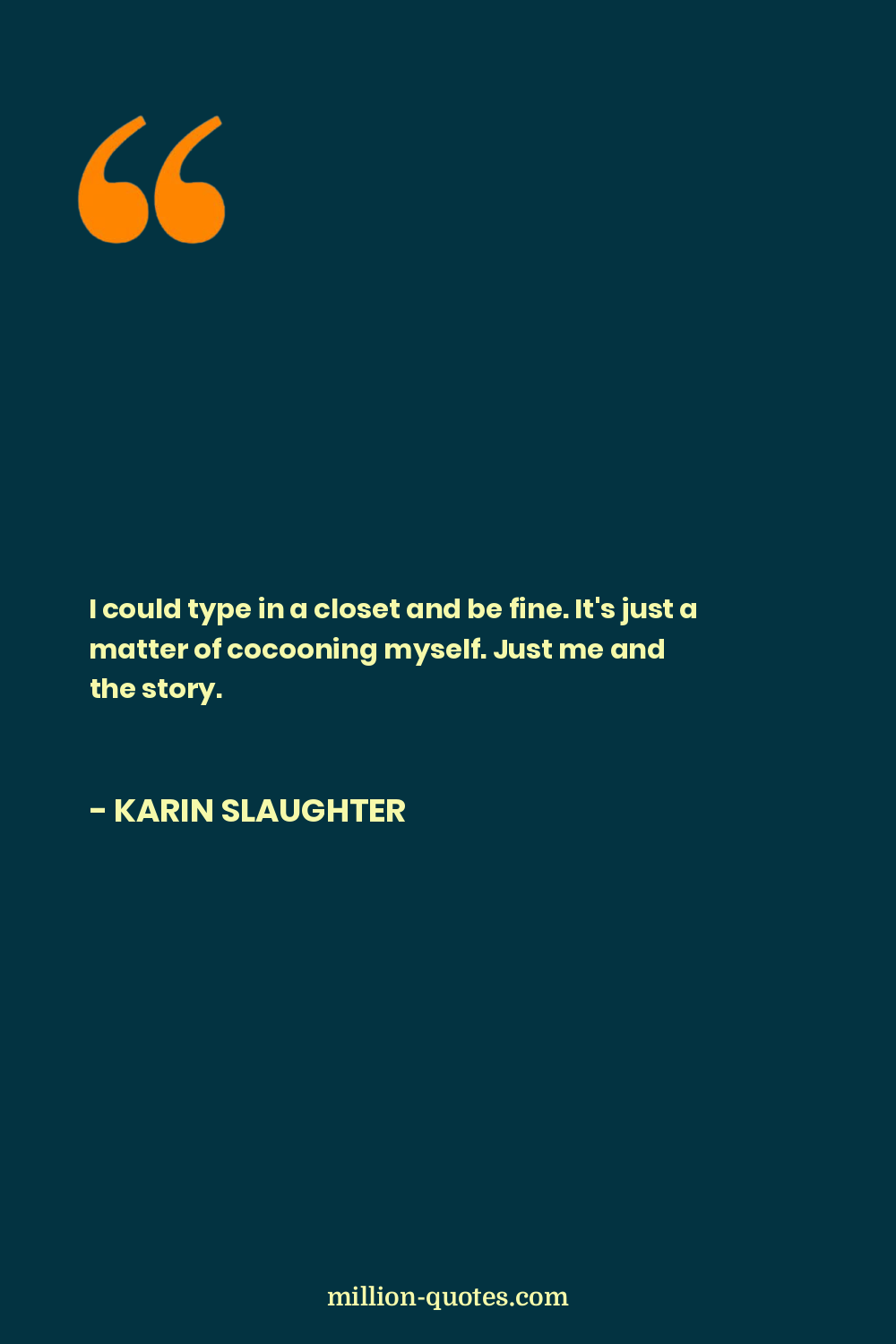 I could type in a closet and be fine. It's just a matter of cocooning myself. Just me and the story.