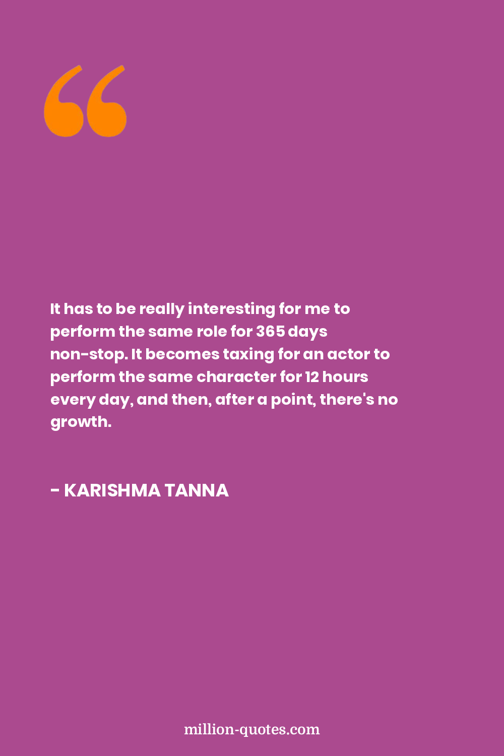 It has to be really interesting for me to perform the same role for 365 days non-stop. It becomes taxing for an actor to perform the same character for 12 hours every day, and then, after a point, there's no growth.