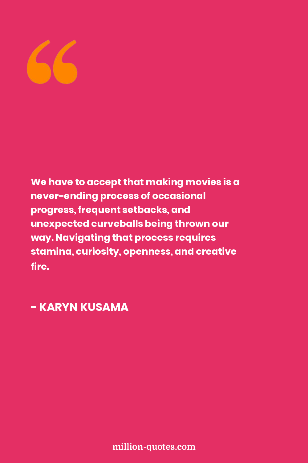 We have to accept that making movies is a never-ending process of occasional progress, frequent setbacks, and unexpected curveballs being thrown our way. Navigating that process requires stamina, curiosity, openness, and creative fire.