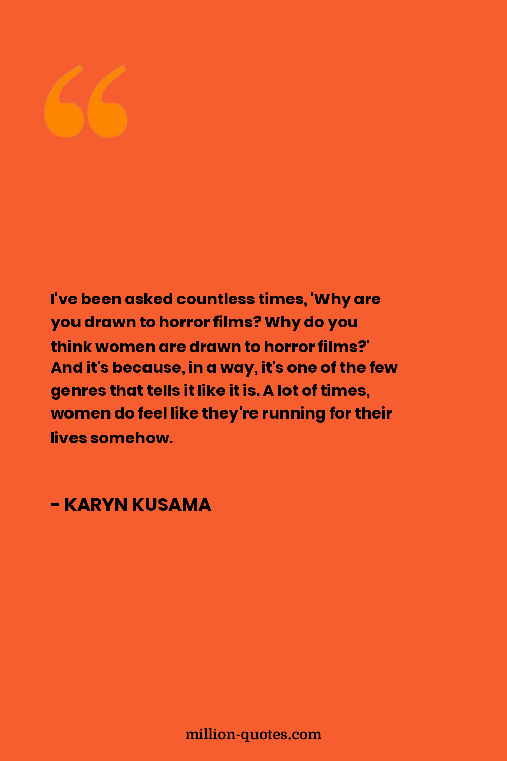 I've been asked countless times, 'Why are you drawn to horror films? Why do you think women are drawn to horror films?' And it's because, in a way, it's one of the few genres that tells it like it is. A lot of times, women do feel like they're running for their lives somehow.