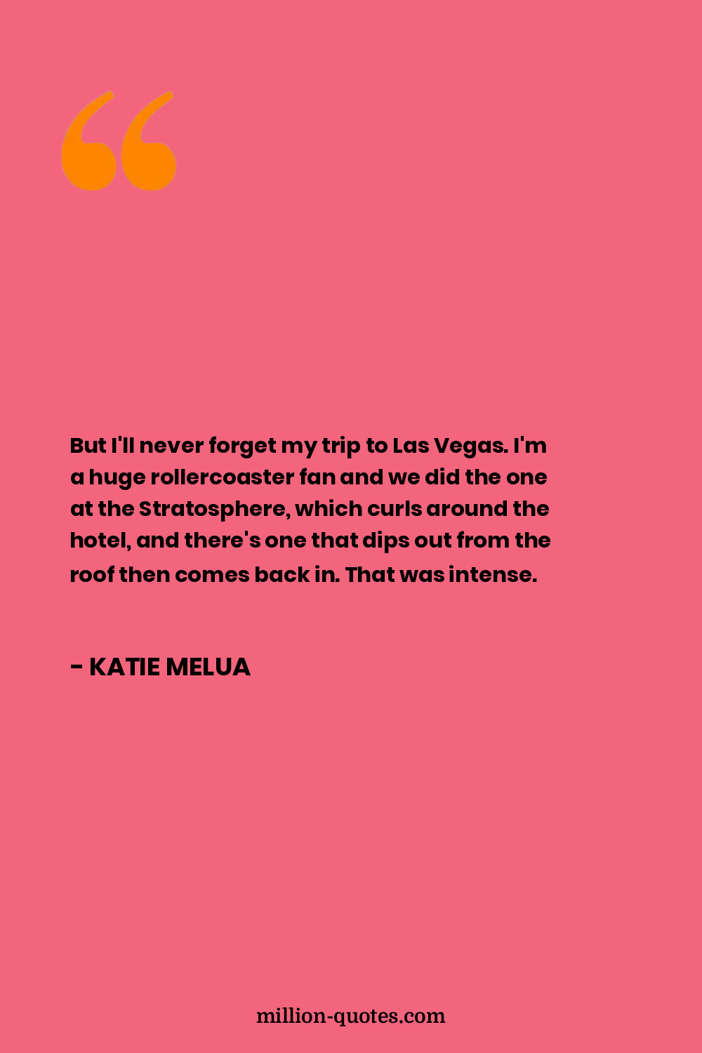 But I'll never forget my trip to Las Vegas. I'm a huge rollercoaster fan and we did the one at the Stratosphere, which curls around the hotel, and there's one that dips out from the roof then comes back in. That was intense.
