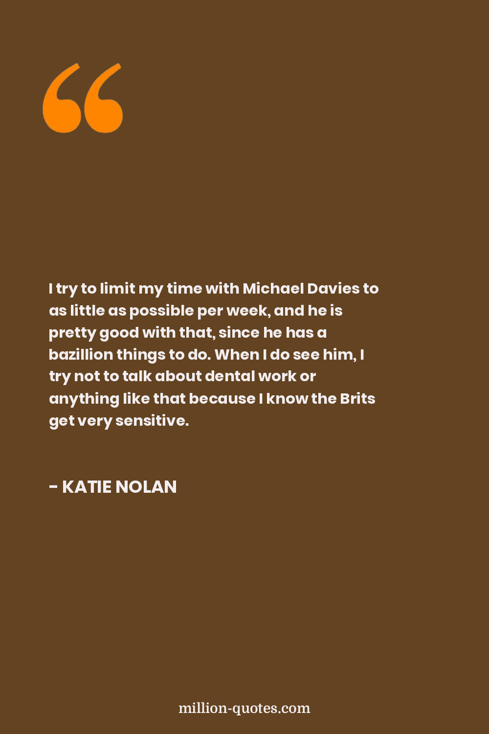 I try to limit my time with Michael Davies to as little as possible per week, and he is pretty good with that, since he has a bazillion things to do. When I do see him, I try not to talk about dental work or anything like that because I know the Brits get very sensitive.