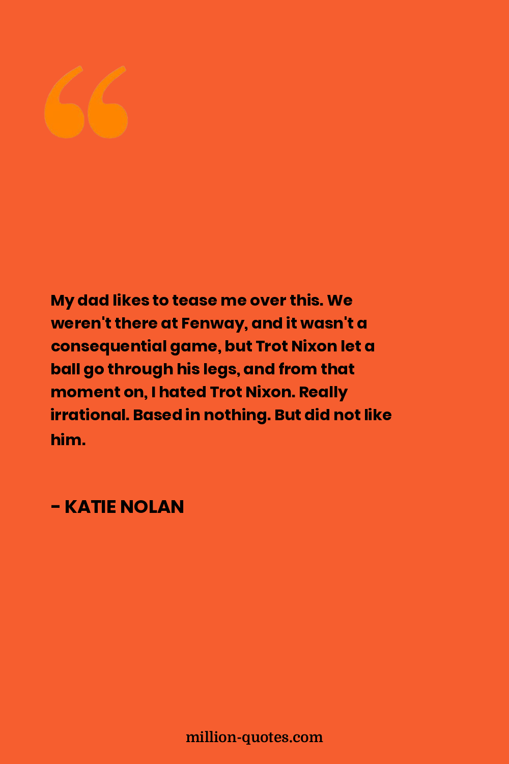 My dad likes to tease me over this. We weren't there at Fenway, and it wasn't a consequential game, but Trot Nixon let a ball go through his legs, and from that moment on, I hated Trot Nixon. Really irrational. Based in nothing. But did not like him.