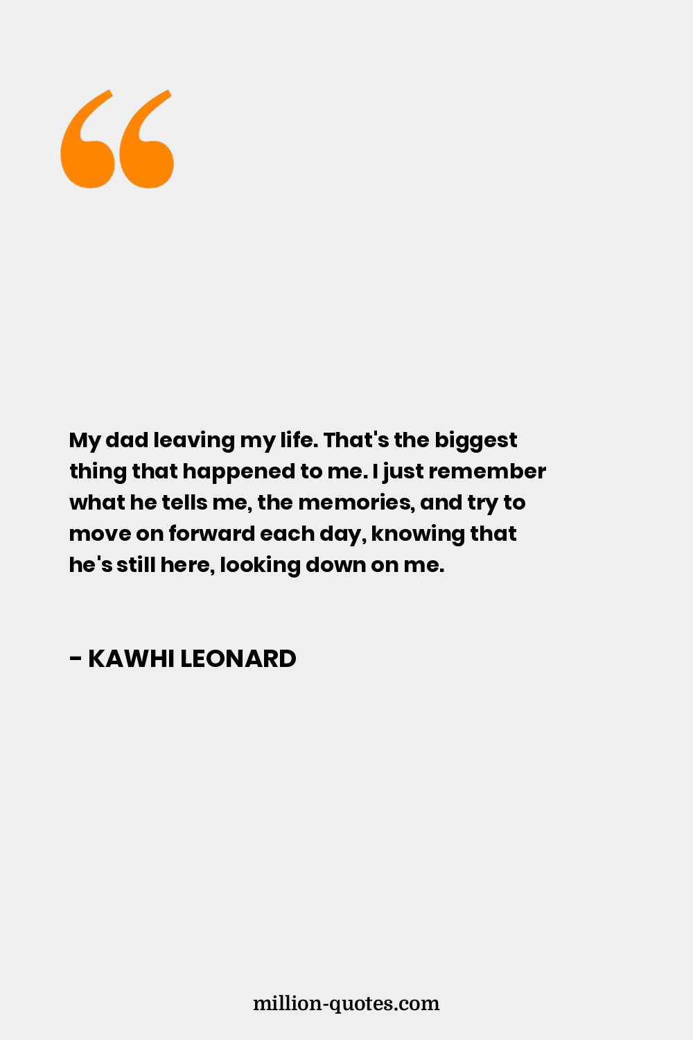 My dad leaving my life. That's the biggest thing that happened to me. I just remember what he tells me, the memories, and try to move on forward each day, knowing that he's still here, looking down on me.