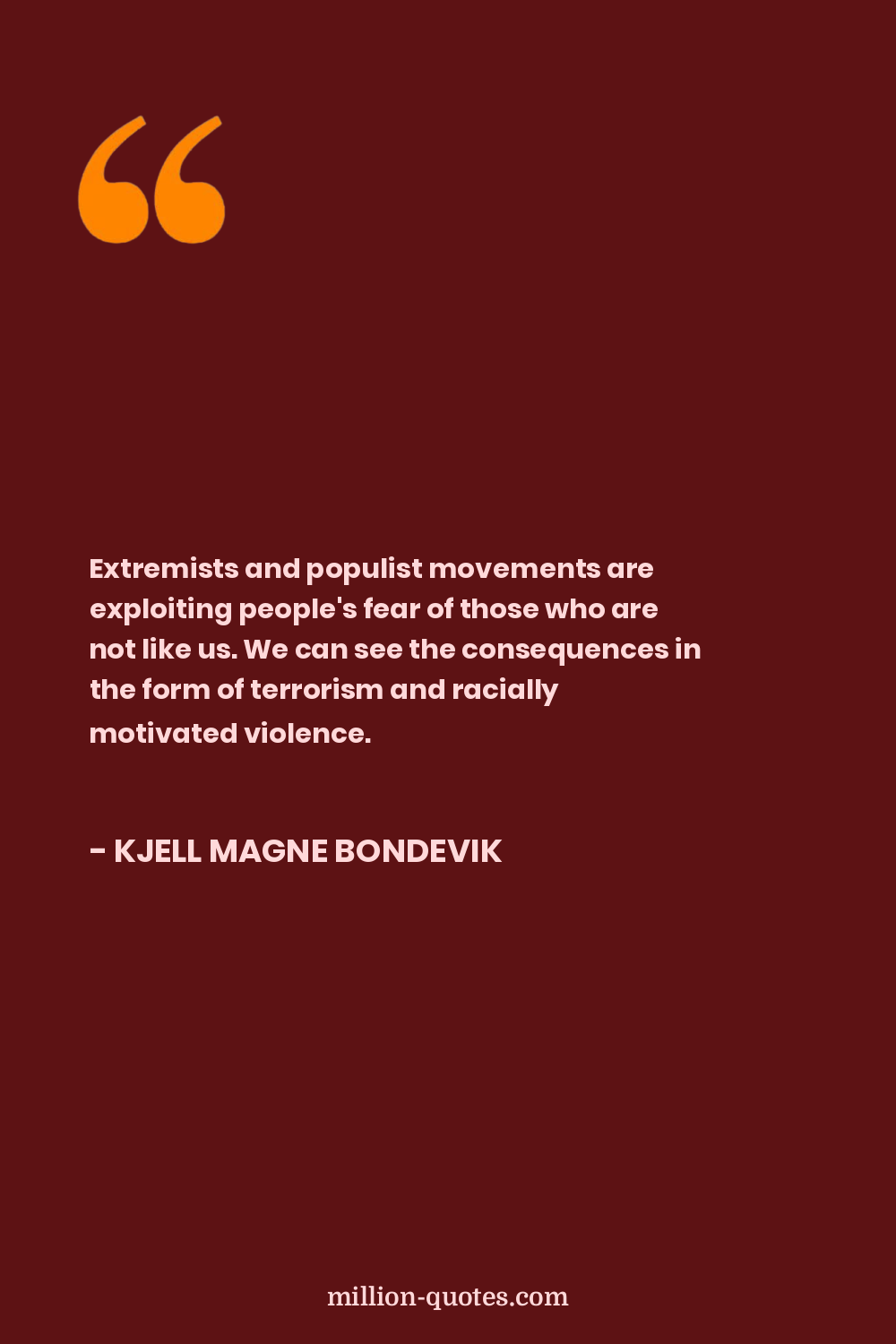 Extremists and populist movements are exploiting people's fear of those who are not like us. We can see the consequences in the form of terrorism and racially motivated violence.