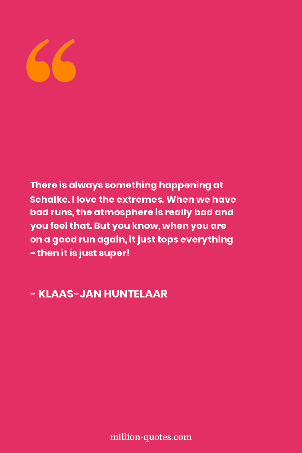 There is always something happening at Schalke. I love the extremes. When we have bad runs, the atmosphere is really bad and you feel that. But you know, when you are on a good run again, it just tops everything - then it is just super!