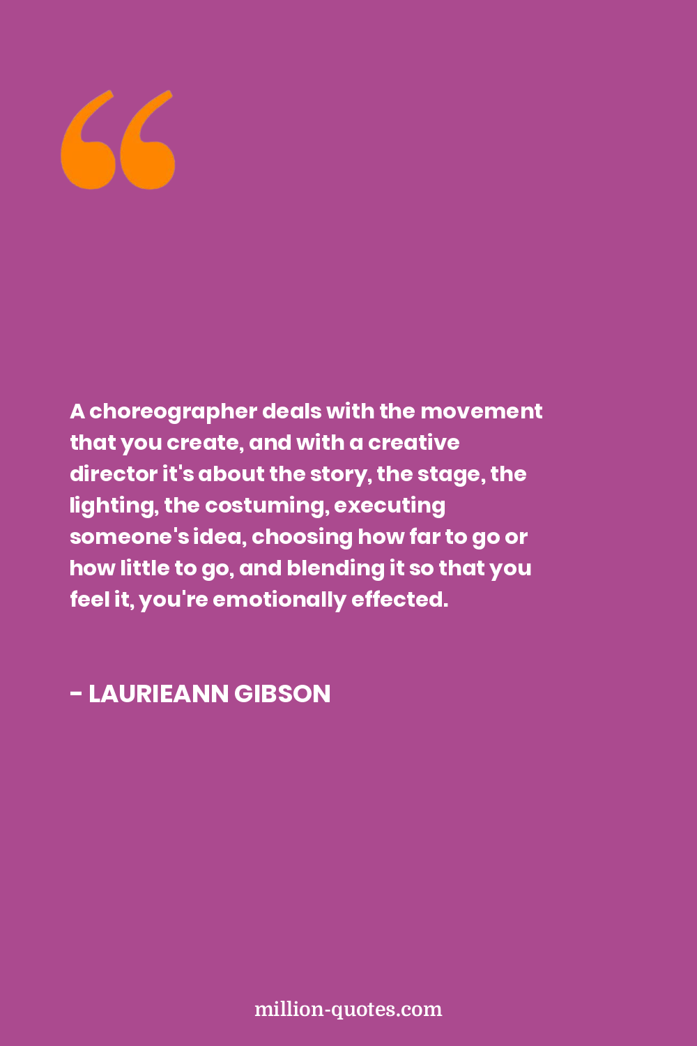 A choreographer deals with the movement that you create, and with a creative director it's about the story, the stage, the lighting, the costuming, executing someone's idea, choosing how far to go or how little to go, and blending it so that you feel it, you're emotionally effected.