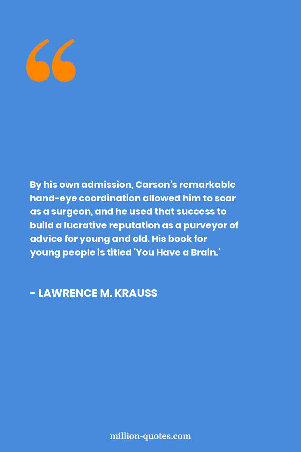 By his own admission, Carson's remarkable hand-eye coordination allowed him to soar as a surgeon, and he used that success to build a lucrative reputation as a purveyor of advice for young and old. His book for young people is titled 'You Have a Brain.'