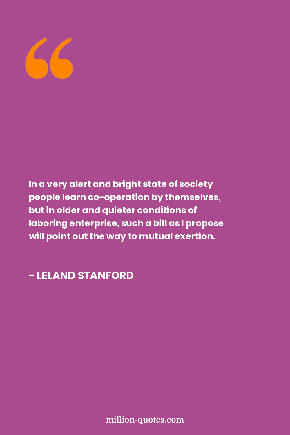 In a very alert and bright state of society people learn co-operation by themselves, but in older and quieter conditions of laboring enterprise, such a bill as I propose will point out the way to mutual exertion.