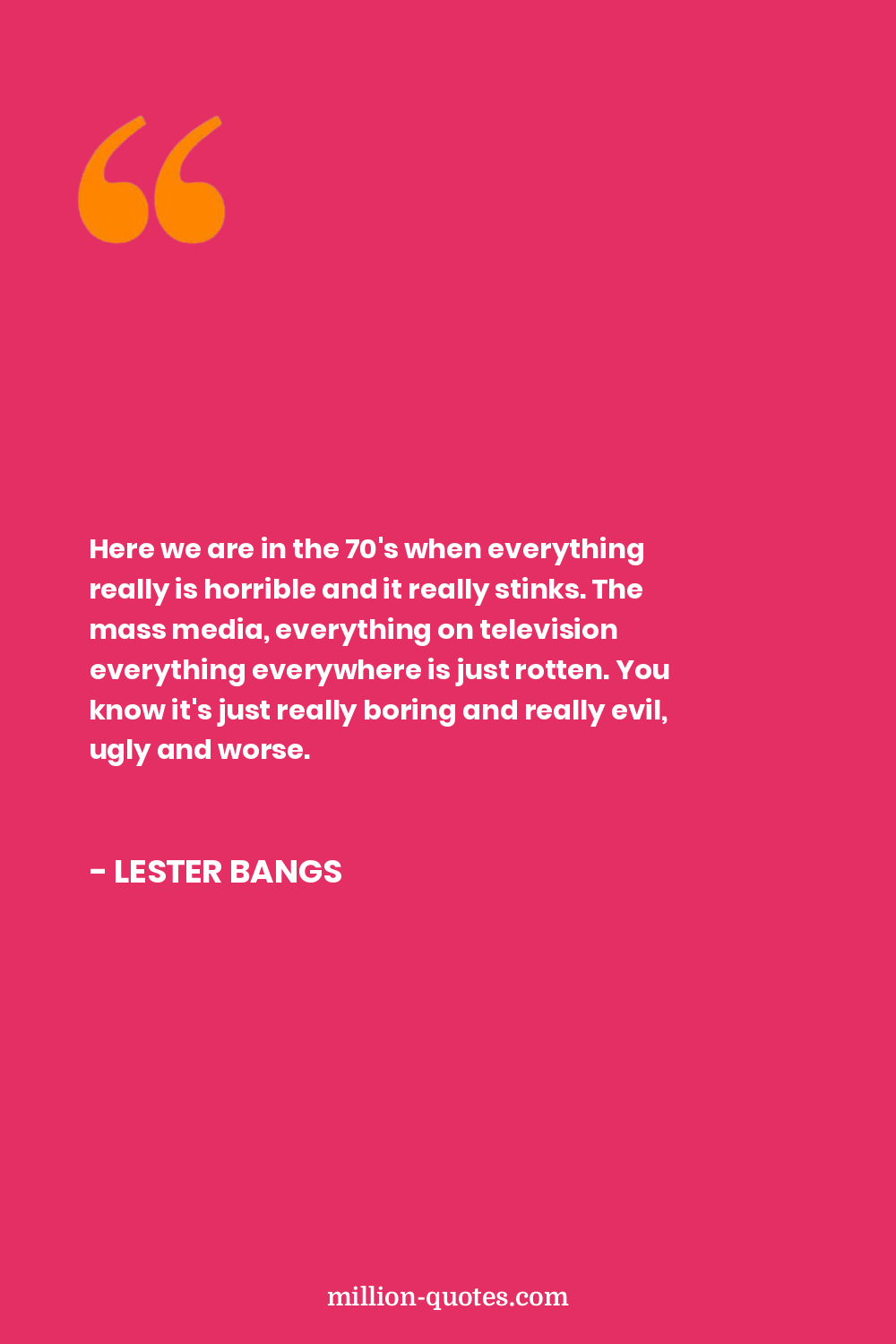 Here we are in the 70's when everything really is horrible and it really stinks. The mass media, everything on television everything everywhere is just rotten. You know it's just really boring and really evil, ugly and worse.