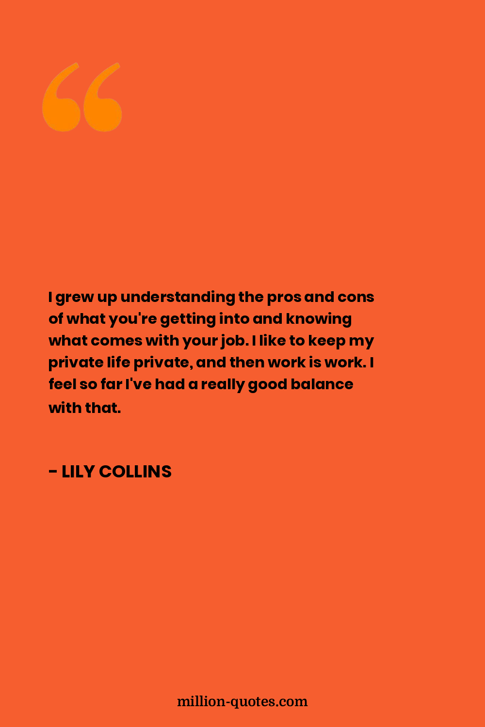 I grew up understanding the pros and cons of what you're getting into and knowing what comes with your job. I like to keep my private life private, and then work is work. I feel so far I've had a really good balance with that.