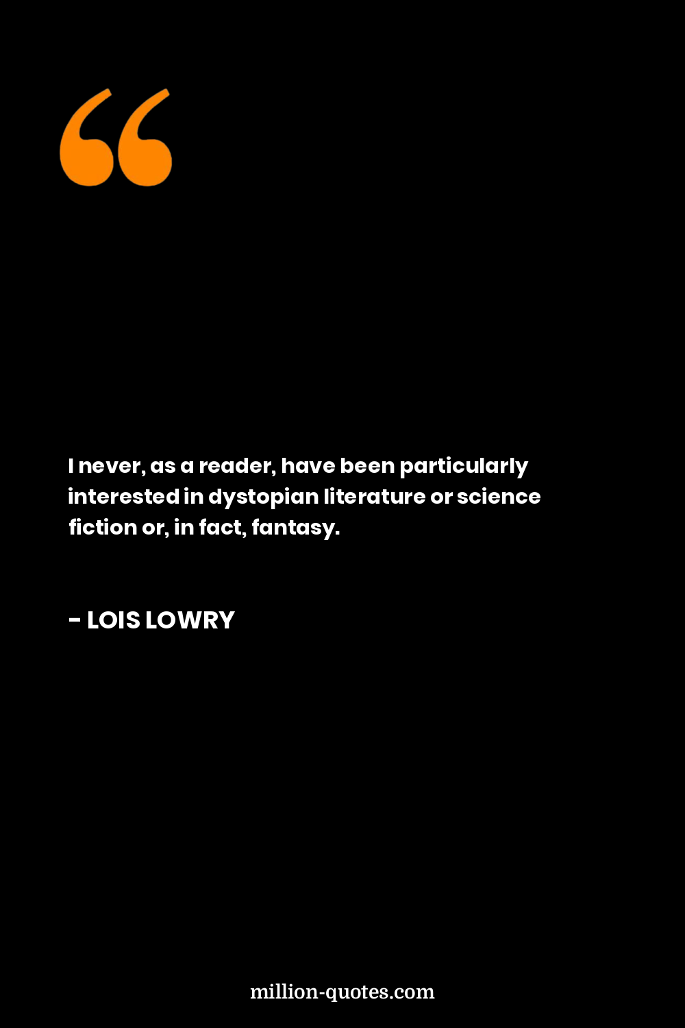I never, as a reader, have been particularly interested in dystopian literature or science fiction or, in fact, fantasy.