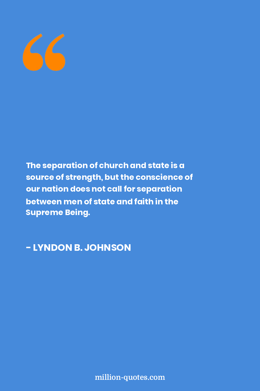 The separation of church and state is a source of strength, but the conscience of our nation does not call for separation between men of state and faith in the Supreme Being.