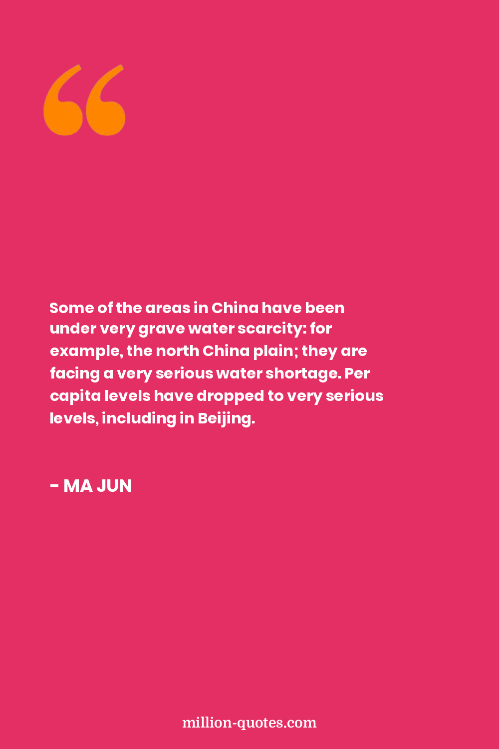 Some of the areas in China have been under very grave water scarcity: for example, the north China plain; they are facing a very serious water shortage. Per capita levels have dropped to very serious levels, including in Beijing.