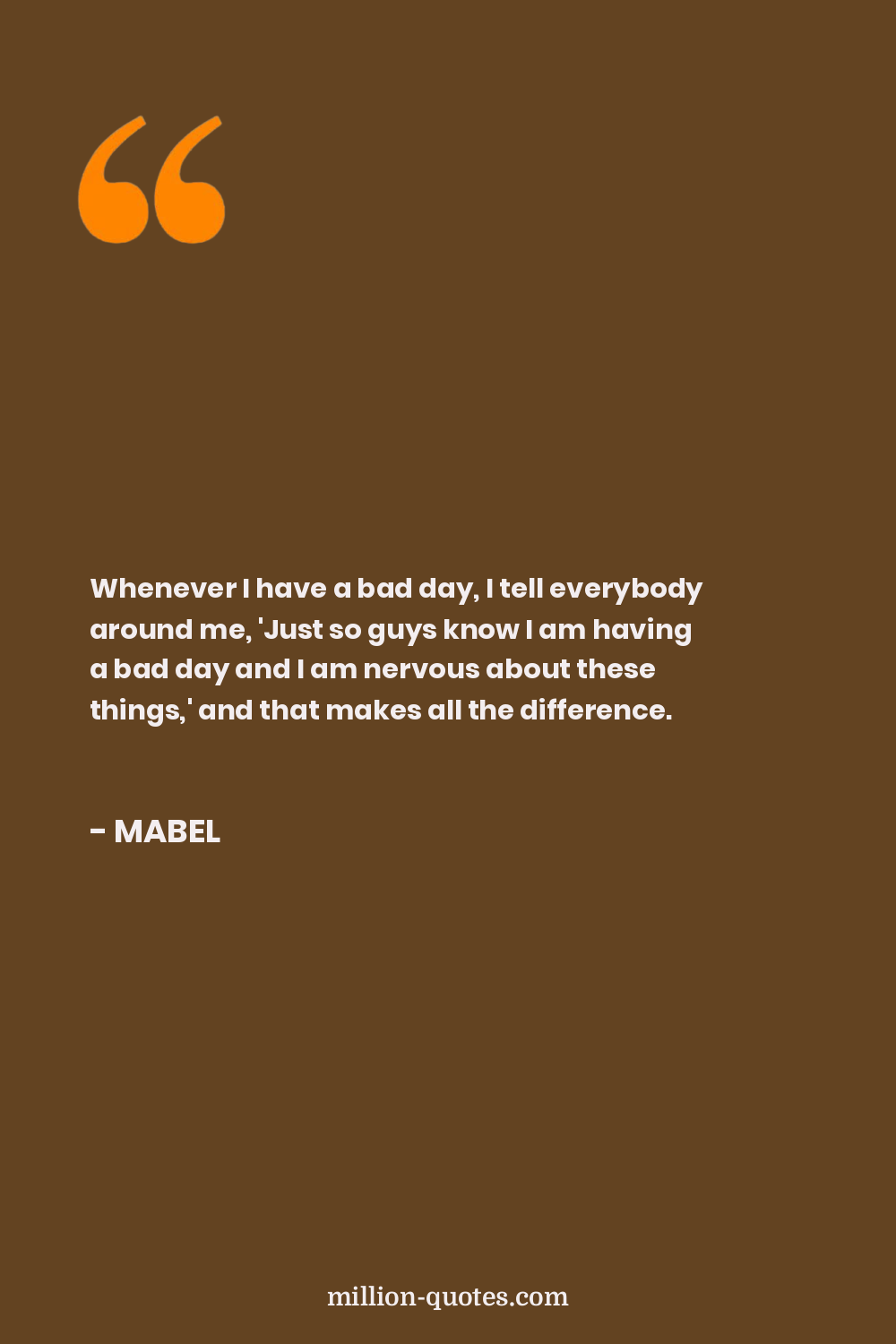Whenever I have a bad day, I tell everybody around me, 'Just so guys know I am having a bad day and I am nervous about these things,' and that makes all the difference.