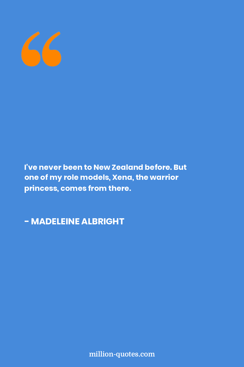 I've never been to New Zealand before. But one of my role models, Xena, the warrior princess, comes from there.