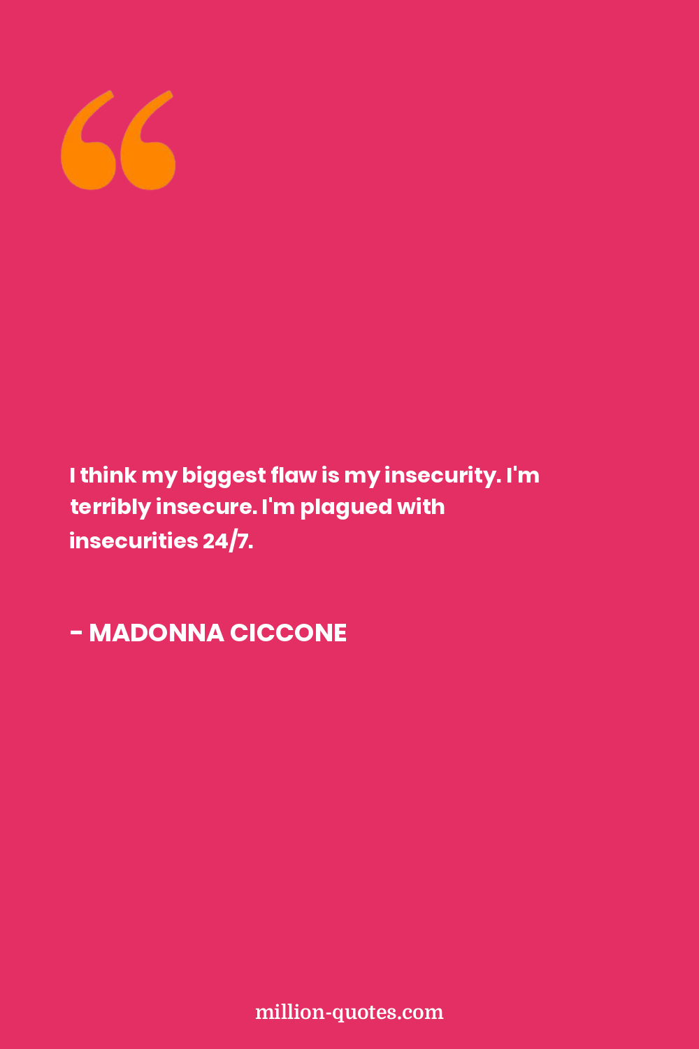 I think my biggest flaw is my insecurity. I'm terribly insecure. I'm plagued with insecurities 24/7.