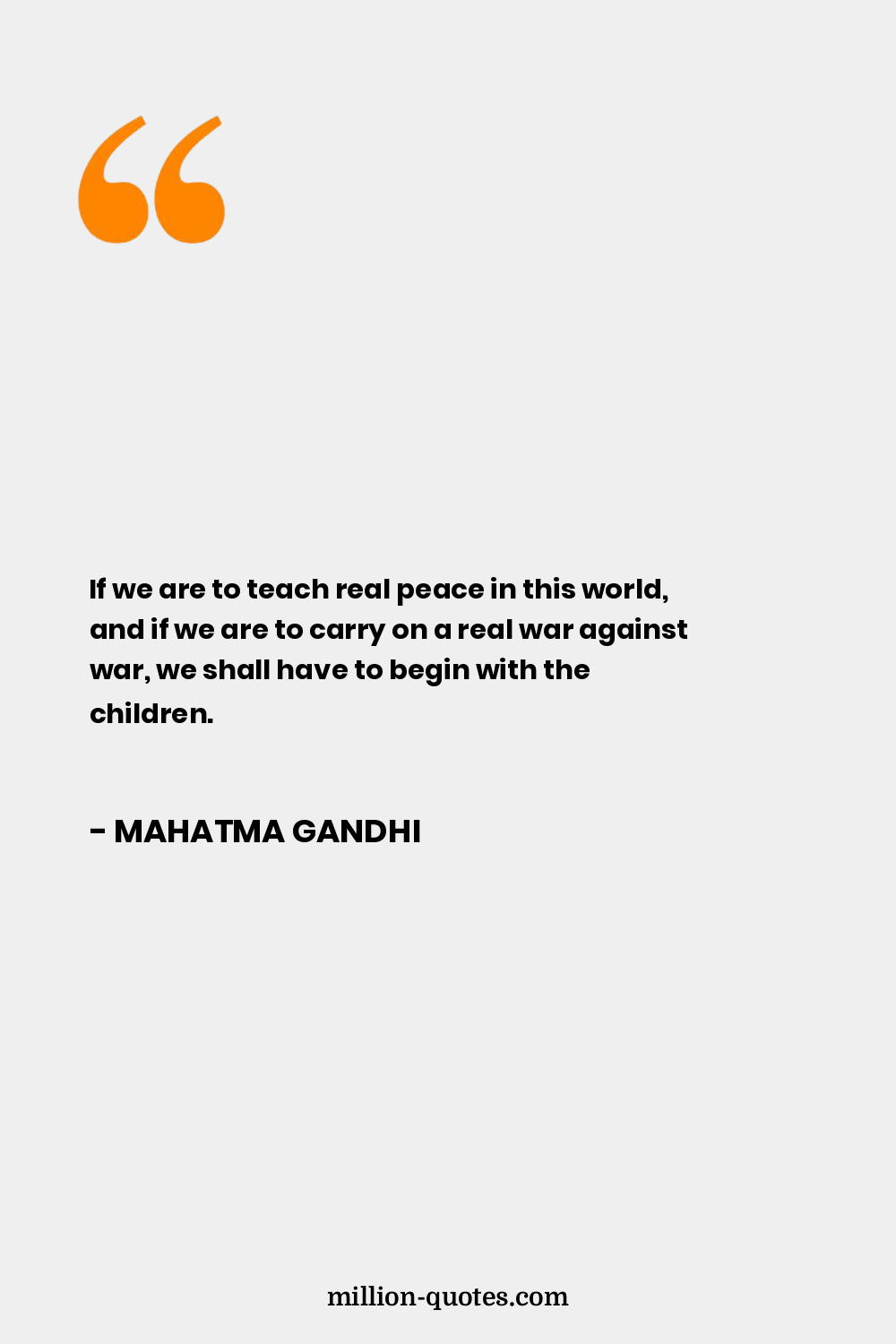If we are to teach real peace in this world, and if we are to carry on a real war against war, we shall have to begin with the children.