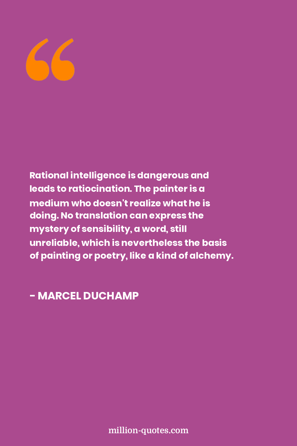Rational intelligence is dangerous and leads to ratiocination. The painter is a medium who doesn't realize what he is doing. No translation can express the mystery of sensibility, a word, still unreliable, which is nevertheless the basis of painting or poetry, like a kind of alchemy.