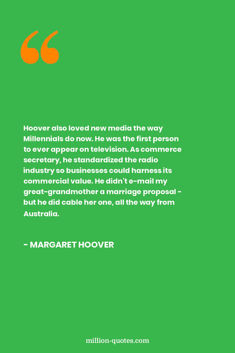 Hoover also loved new media the way Millennials do now. He was the first person to ever appear on television. As commerce secretary, he standardized the radio industry so businesses could harness its commercial value. He didn't e-mail my great-grandmother a marriage proposal - but he did cable her one, all the way from Australia.