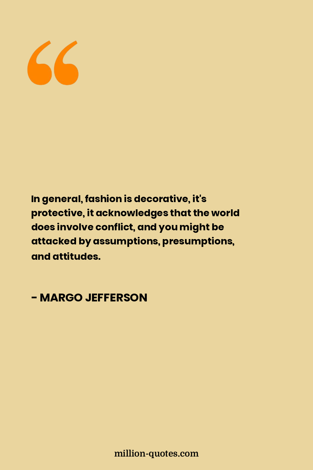 In general, fashion is decorative, it's protective, it acknowledges that the world does involve conflict, and you might be attacked by assumptions, presumptions, and attitudes.