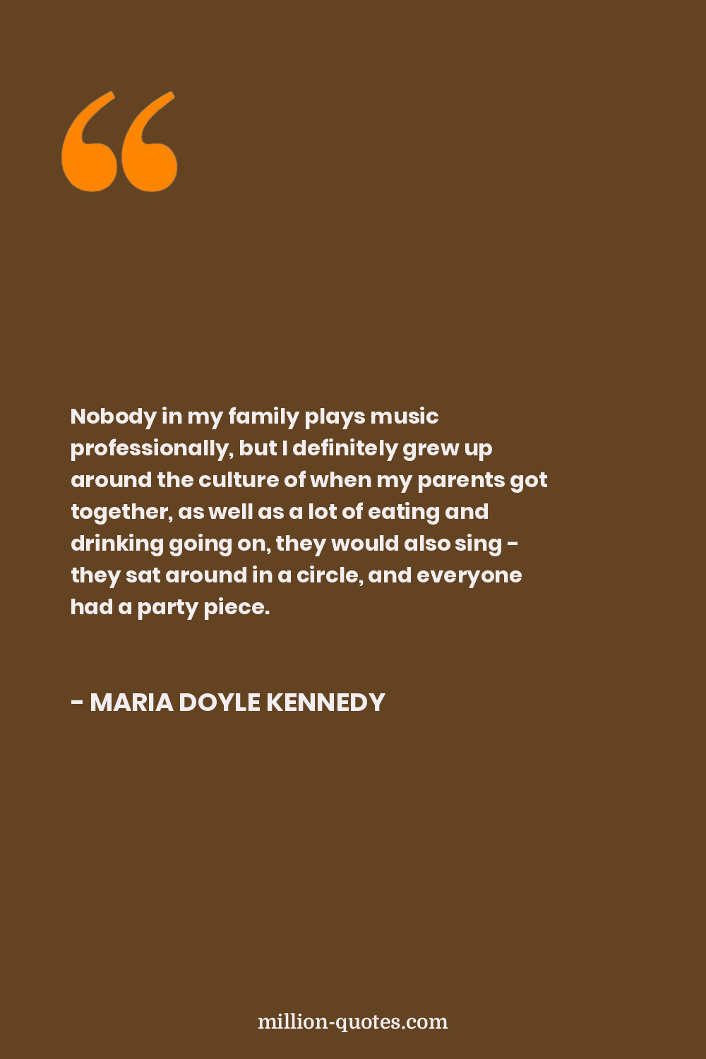 Nobody in my family plays music professionally, but I definitely grew up around the culture of when my parents got together, as well as a lot of eating and drinking going on, they would also sing - they sat around in a circle, and everyone had a party piece.