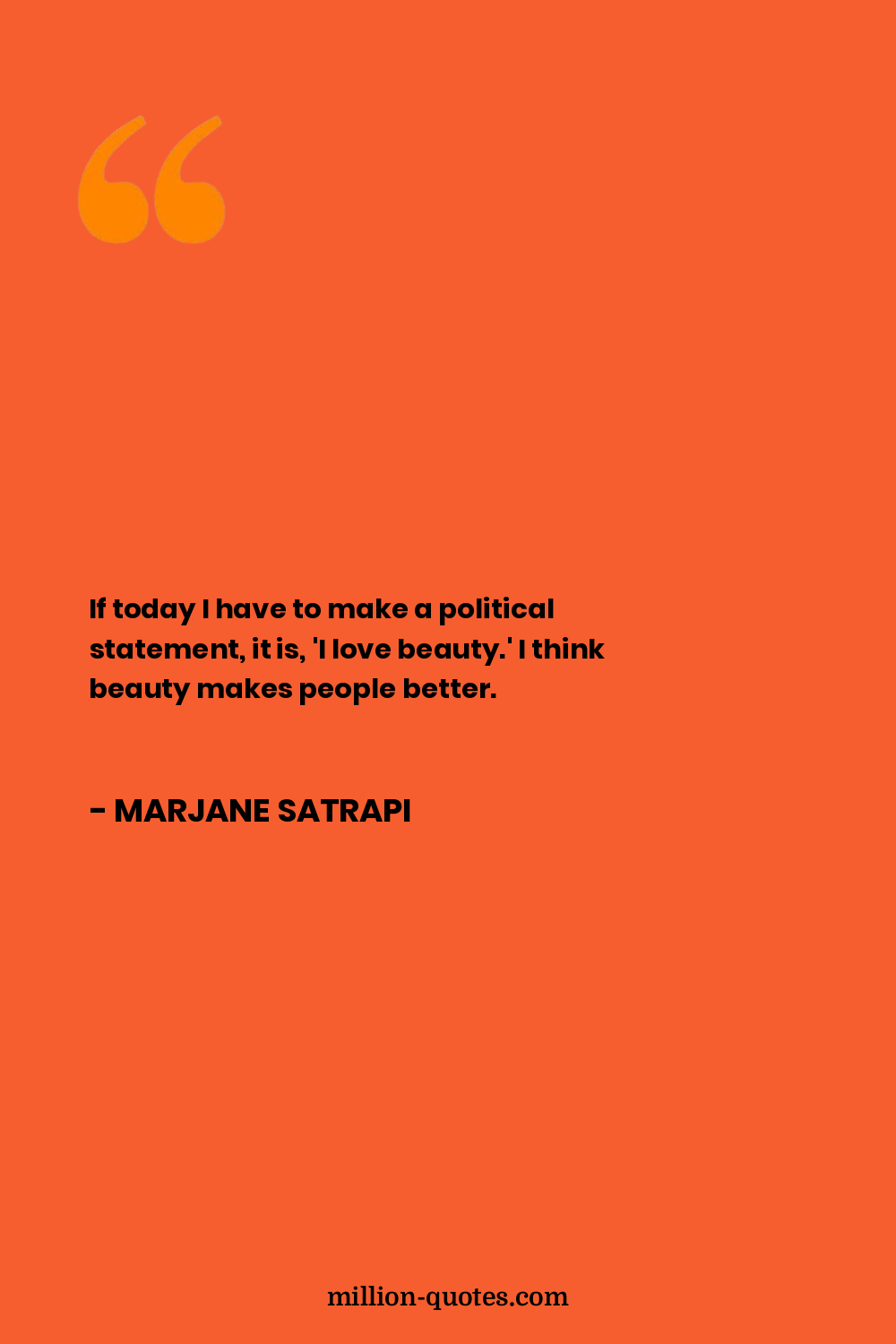 If today I have to make a political statement, it is, 'I love beauty.' I think beauty makes people better.