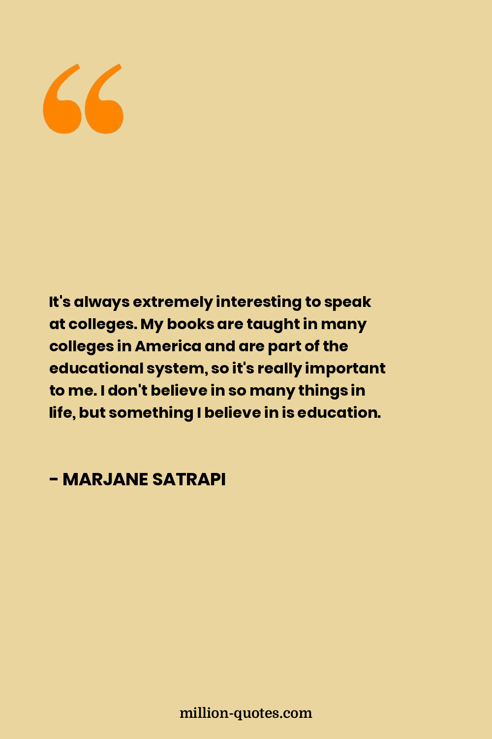 It's always extremely interesting to speak at colleges. My books are taught in many colleges in America and are part of the educational system, so it's really important to me. I don't believe in so many things in life, but something I believe in is education.