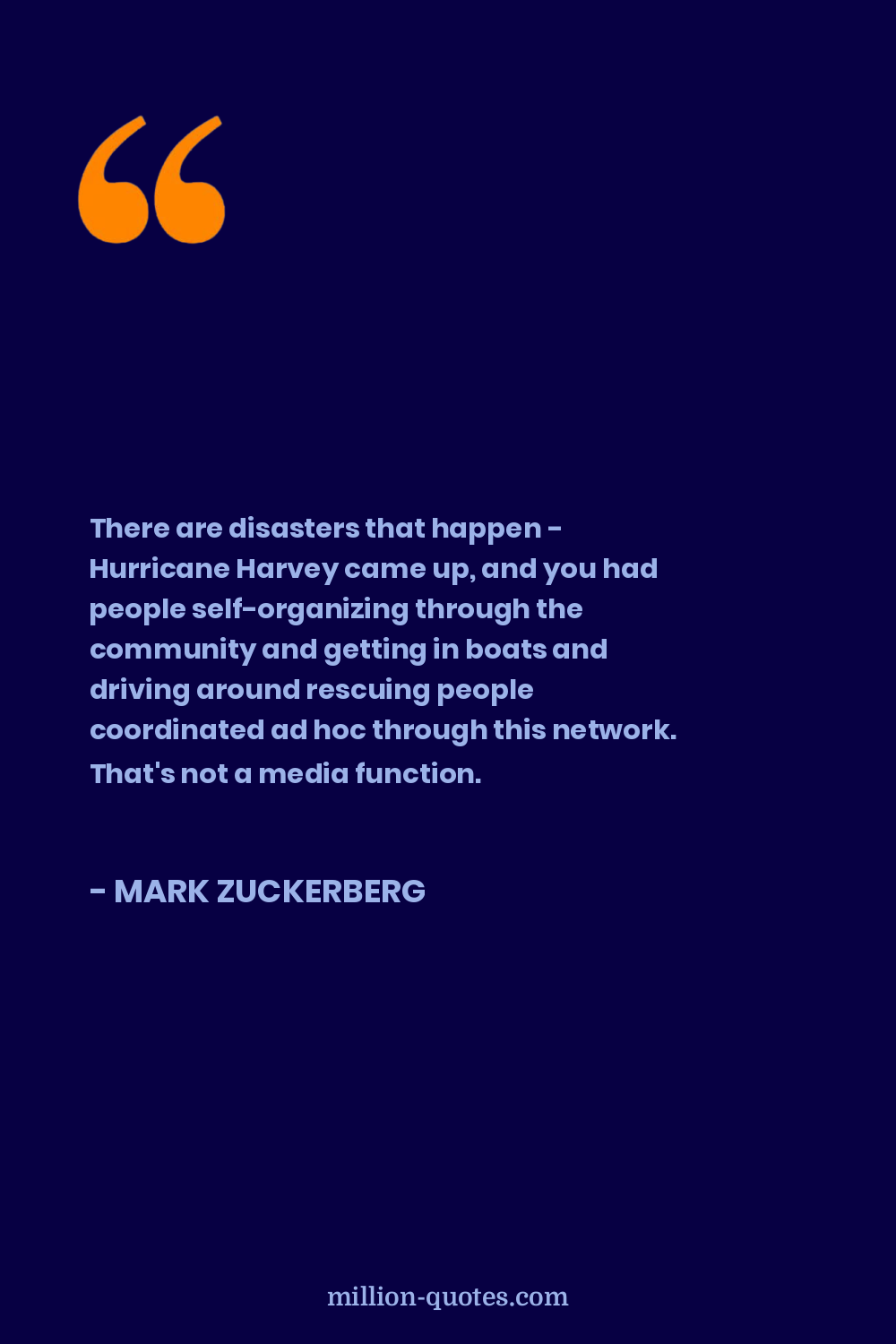 There are disasters that happen - Hurricane Harvey came up, and you had people self-organizing through the community and getting in boats and driving around rescuing people coordinated ad hoc through this network. That's not a media function.