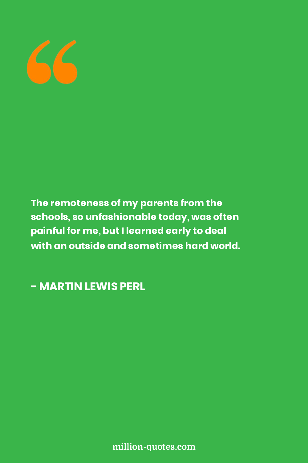 The remoteness of my parents from the schools, so unfashionable today, was often painful for me, but I learned early to deal with an outside and sometimes hard world.
